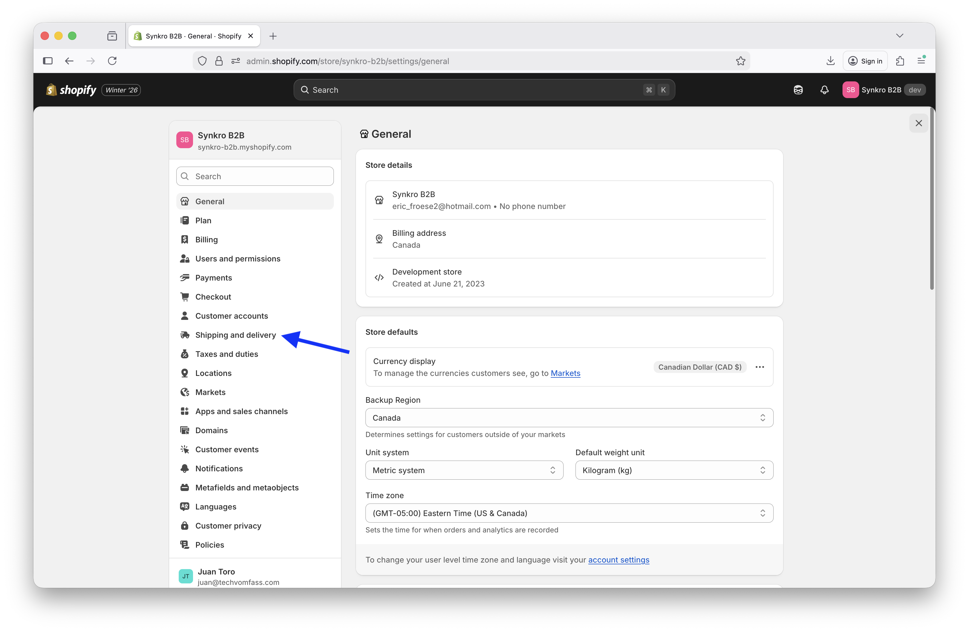 Navigate into your Shopify store settings